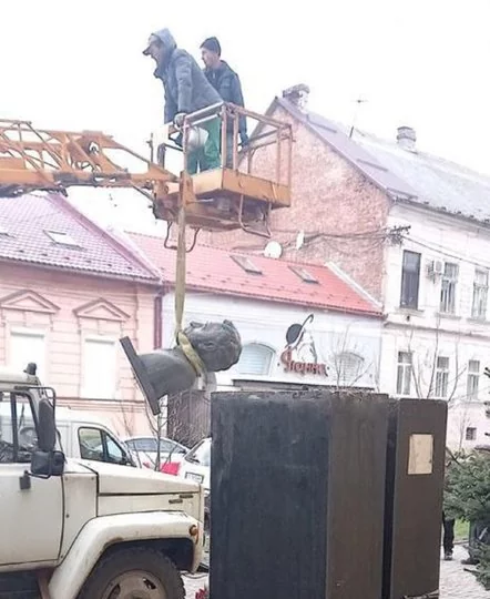 Una situación similar se dio en Mukachevo, en la provincia de Zakarpattia, en donde ya desmantelaron el monumento a los soldados soviéticos que, si bien liberaron esa región de los invasores nazis, también vinieron a establecer el régimen soviético. En Ucrania occidental, los soviéticos no son considerados «libertadores», sino que apropiadamente «invasores»: