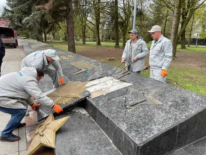 Pero son casos aislados pues, por ejemplo, un monumento a «los 60 años del Komsomol» (una organización juvenil comunista), que había sido conservada sólo porque costaba $ 15,000 su destrucción, tras el lanzamiento de la invasión el pasado febrero, fue inmediatamente demolido en la ciudad de Kropyvnytsky, y como mencionó el activista Dmytro Zavrazhnyi, «Sería mejor instalar aquí un tanque ruso destruído, o un APC, pues así la gente que venga, con sus hijos, recordará y verá que tuvimos una guerra, que Rusia nos atacó».