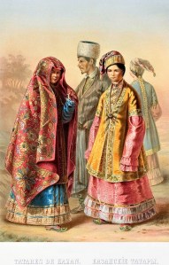 Sacaban sus ropas más finas, sus nuevas chaquetas de lana, los justillos bordados, los cinturones y billeteras cosidos a mano, los chalecos, los pañuelos rojos de seda, e incluso el mantillo blanco como la nieve que la madre llevaba siempre con mucho cuidado sobre su hombro. Ivan recibió un sombrero nuevo y una larga alforja para el hombro, que colgaba golpeando sus piernas.