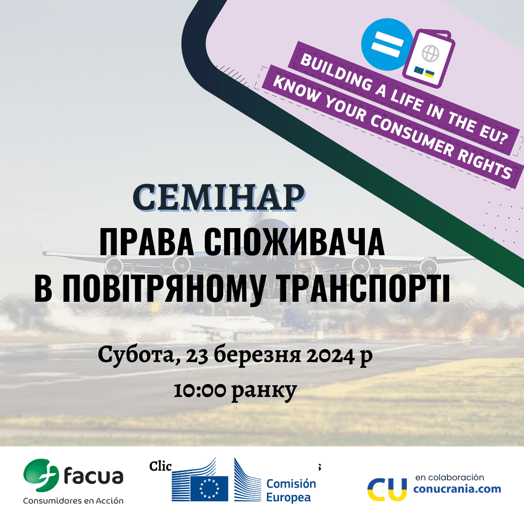 Семінар «Права споживачів у повітряному транспорті» з FACUA та ConUcrania (23/03/2024)